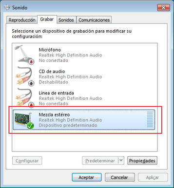 , tenes que apretar con el click derecho y le das habilitar y después predetermina ese dispositivo como grabadora.